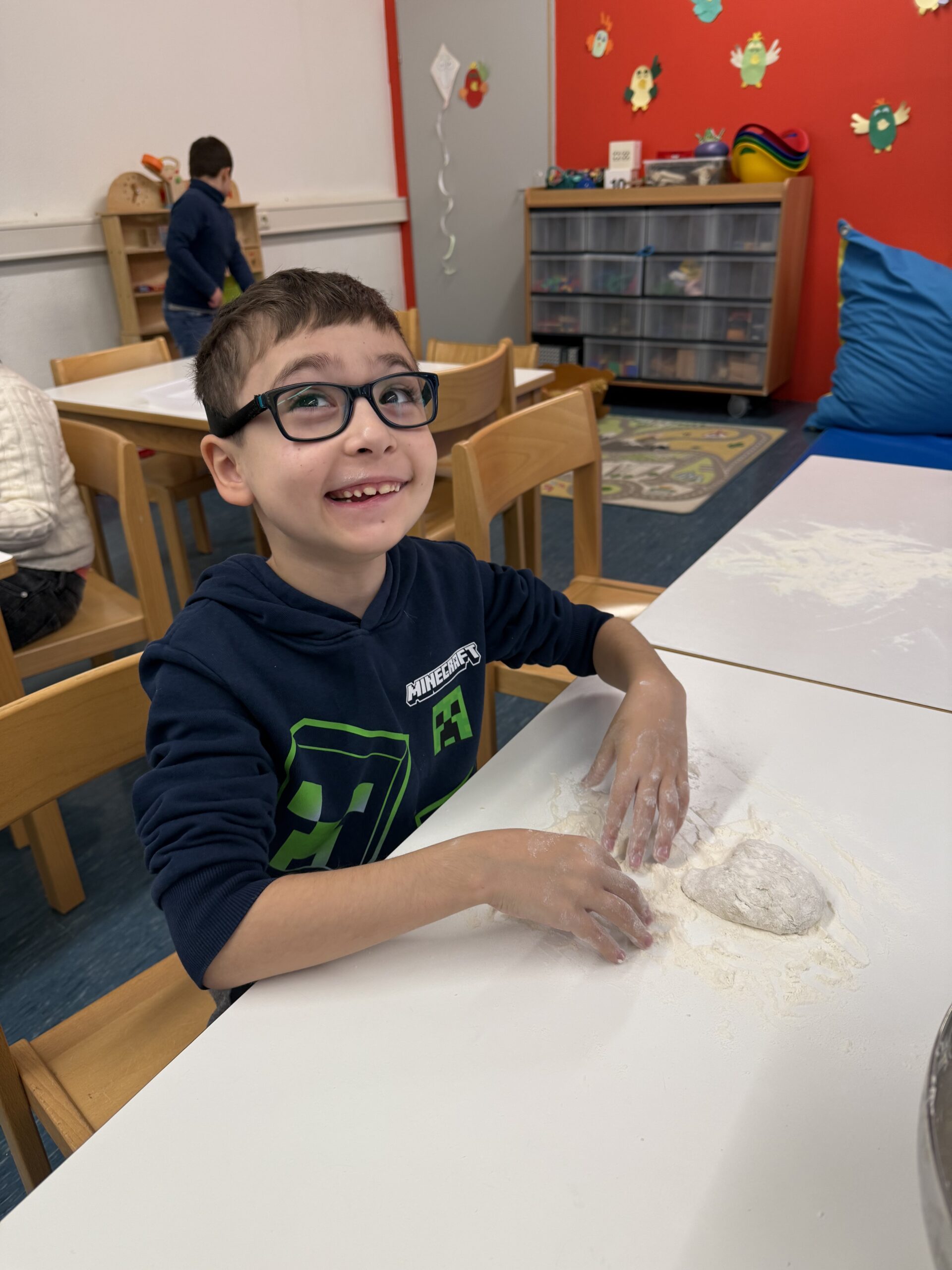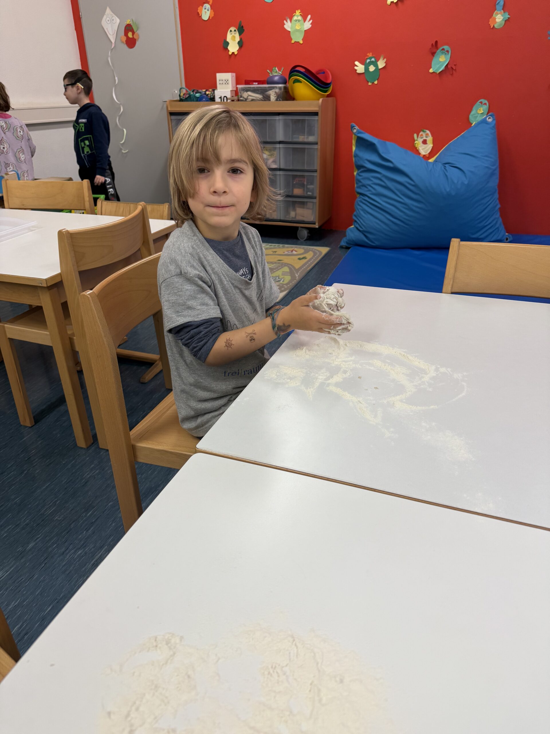 Gemeinsam wird geschnitten, vorbereitet, probiert – und dabei nicht nur gegessen, sondern auch gelernt, Verantwortung zu übernehmen. Ein besonderes Highlight: Heute hat die Klasse ihr eigenes Brot gebacken.